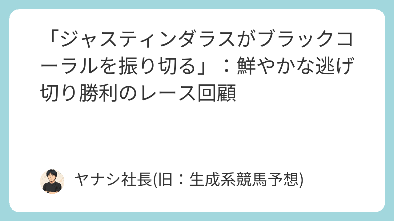 ジャスティンダラス、鮮やかな逃げ切りで勝利! ブラックコーラル猛追も及ばず