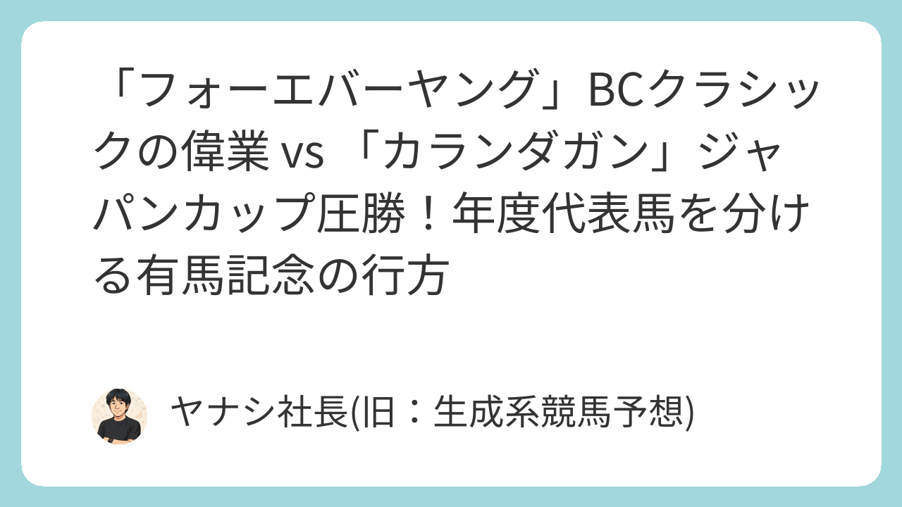「フォーエバーヤング」BCクラシックの偉業 vs 「カランダガン」ジャパンカップ圧勝!年度代表馬を分ける有馬記念の行方