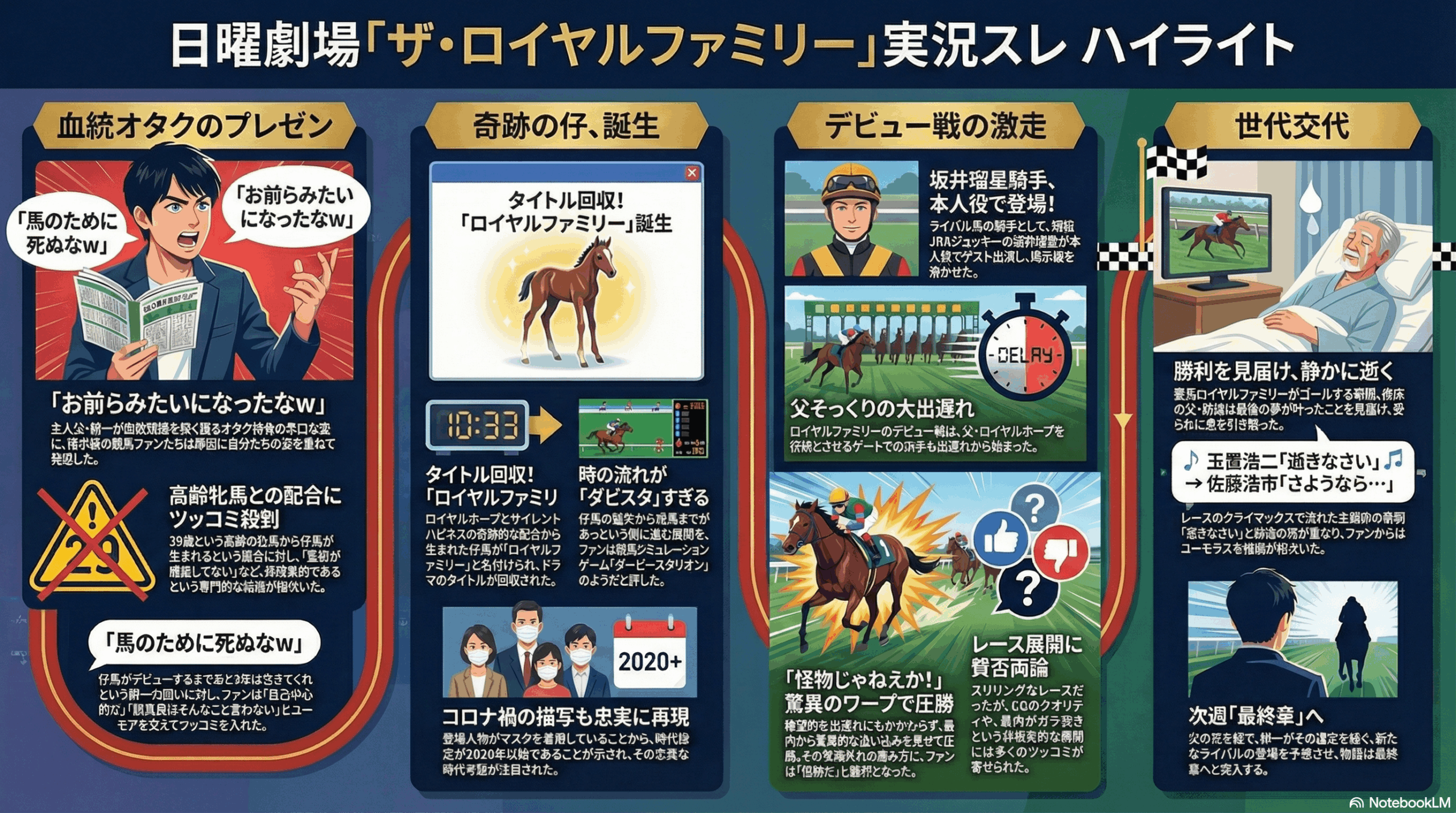「ロイヤルファミリー」の誕生からデビュー戦での圧勝、そして耕造の最期まで、競馬のロマンと家族の絆が深く描かれた今回のエピソード。今後の「ロイヤルファミリー」の活躍、そして残された家族の物語に、ますます目が離せません。