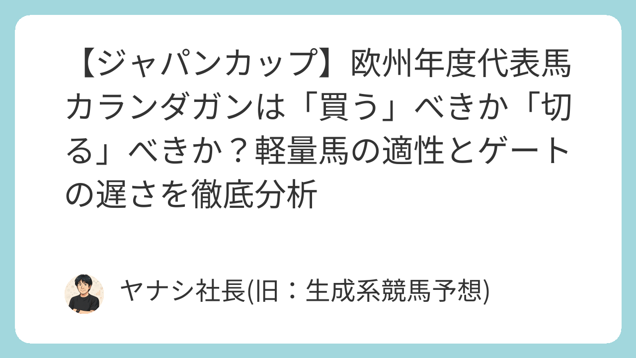 「飛んだら二度とジャパンカップでは海外馬買わない」という覚悟で単複を買うという投稿もあるほど、カランダガンは今回、単なる一頭の出走馬ではなく、「ジャパンカップに挑戦する海外のトップホース」というロマンを背負っています。