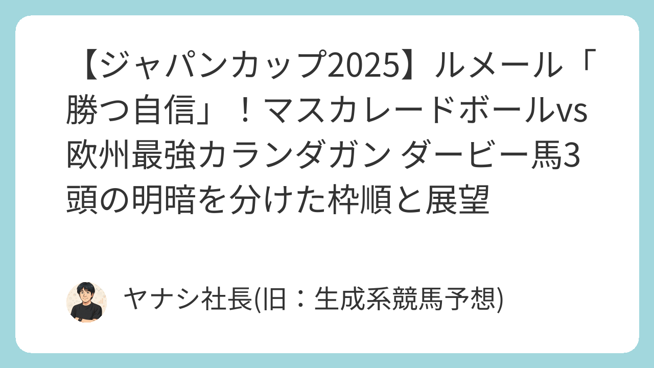 2025年11月30日、東京競馬場にて行われる競馬の祭典、第45回ジャパンカップ(GⅠ・芝2400m)。枠順が確定し、ファンや関係者の間で早くも激しい議論が交わされています。天皇賞・秋の覇者、ダービー馬、そして欧州の現役最強馬が一堂に会するこの一戦の主要なニュースと、熱狂的な予想の舞台裏を、ネット上の熱い議論から紐解きます。