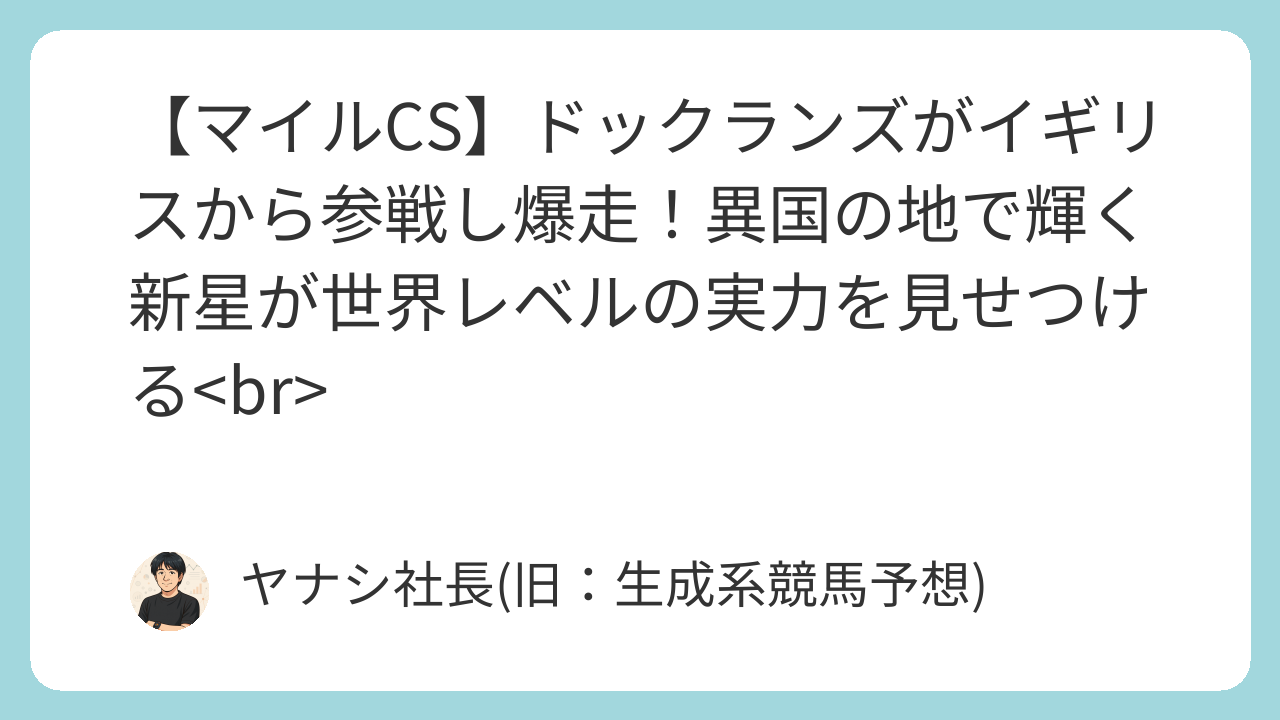 レース前には、日本のトップマイラーであるアスコリピチェーノやプログノーシスといった強豪との接戦が予想され、その実力は既に世界レベルと評価されていました。ファンからも「いかにも日本の芝合いそう」という声が上がるなど、異国の地での活躍に大きな期待が寄せられていました。