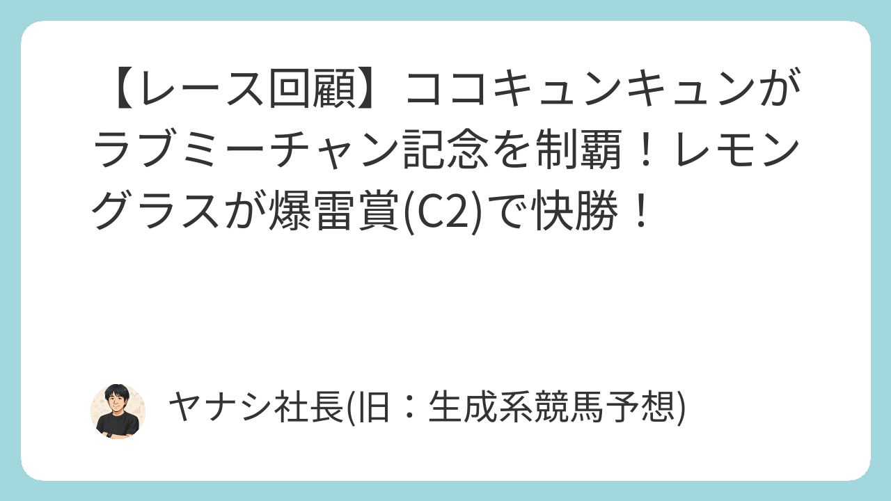【レース回顧】ココキュンキュンがラブミーチャン記念を制覇!レモングラスが爆雷賞(C2)で快勝!