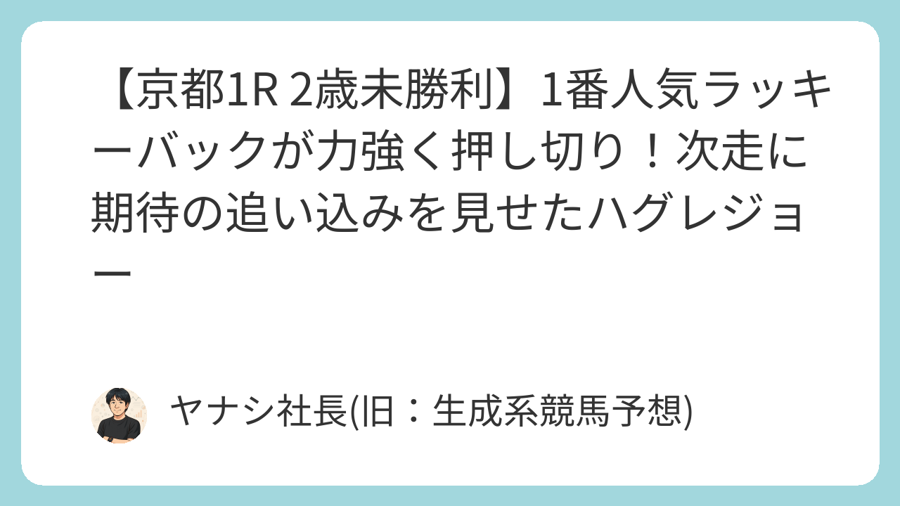 2025年11月29日、京都競馬場で行われた第1レース・2歳未勝利戦は、単勝オッズ3.2倍の1番人気に推されたラッキーバック(牡2、C.デムーロ騎手)が、その実力を存分に発揮し圧勝しました。ダートコースでの戦いは、若駒たちのポテンシャルと今後の活躍を占う上で、見どころの多い一戦となりました。