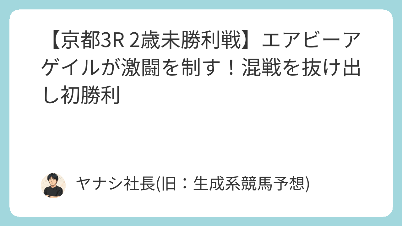 2025年8月4日、京都競馬場で行われた2歳未勝利戦、3Rは、未来のスターホースを予感させる熱い戦いが繰り広げられました。好スタートから先行争いを演じた各馬が、最後の直線で激しい叩き合いを見せる中、岩田望来騎手鞍上のエアビーアゲイルが見事な勝利を収めました。