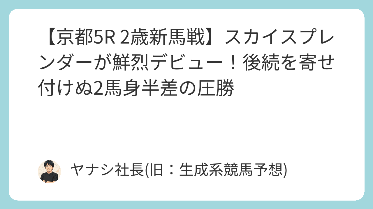 京都5R 2歳新馬戦:スカイスプレンダーが鮮烈デビュー!