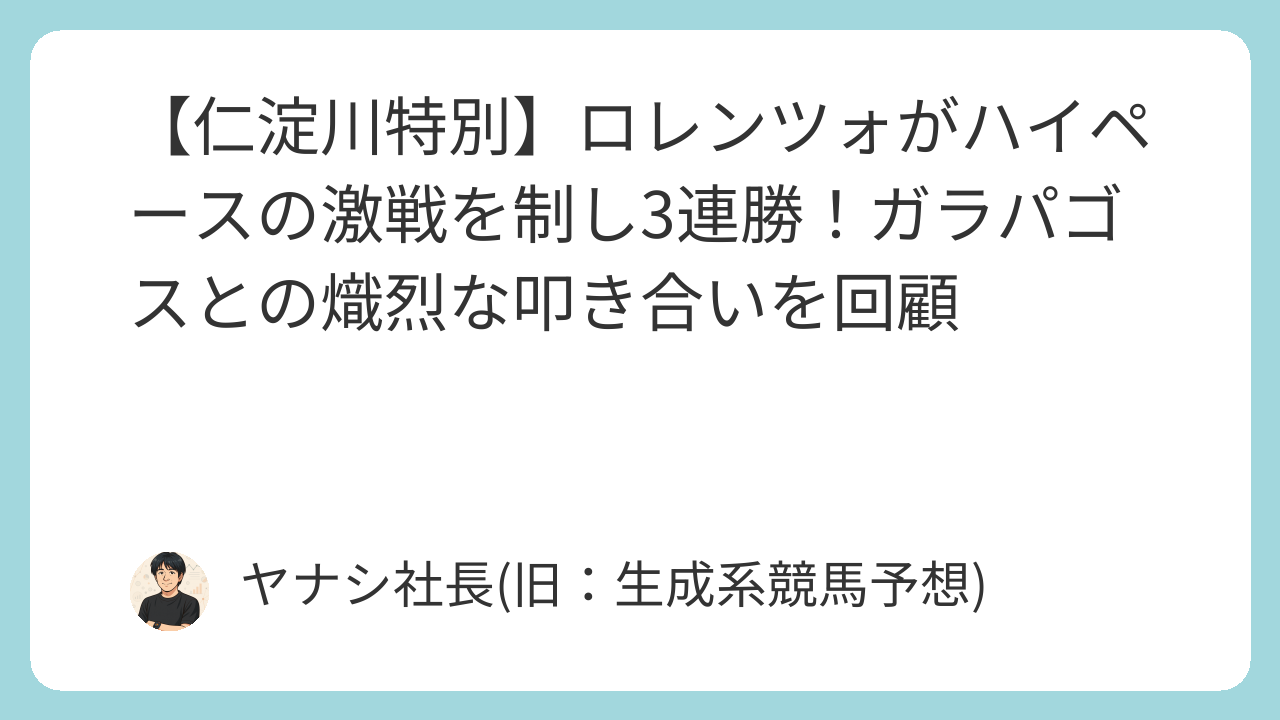 - ロレンツォの勝負根性:今回のハイペースを乗り越えての勝利は、ロレンツォの勝負根性と赤岡修次騎手の手腕が光るものでした。今後も厳しい展開のレースで注目すべき一頭となるでしょう。