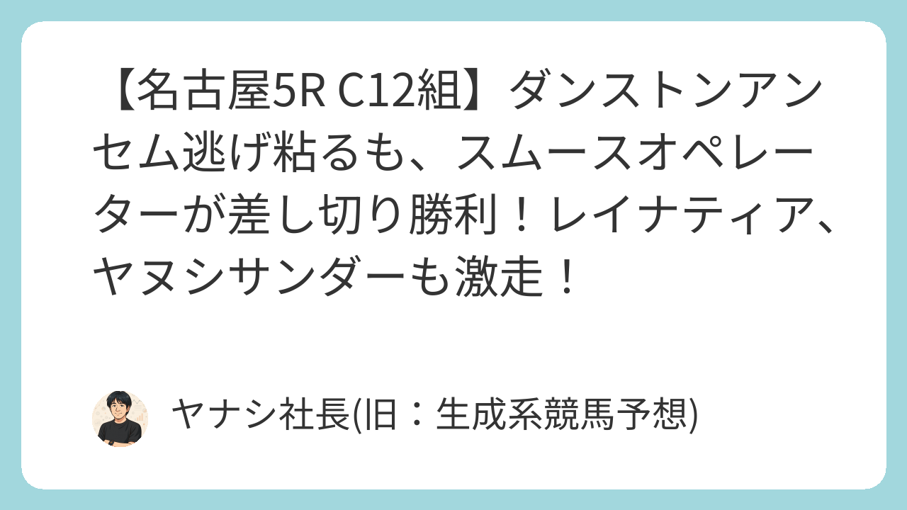 【名古屋5R C12組】ダンストンアンセムが逃げ粘るも、最後はスムースオペレーターが差し切り勝利!