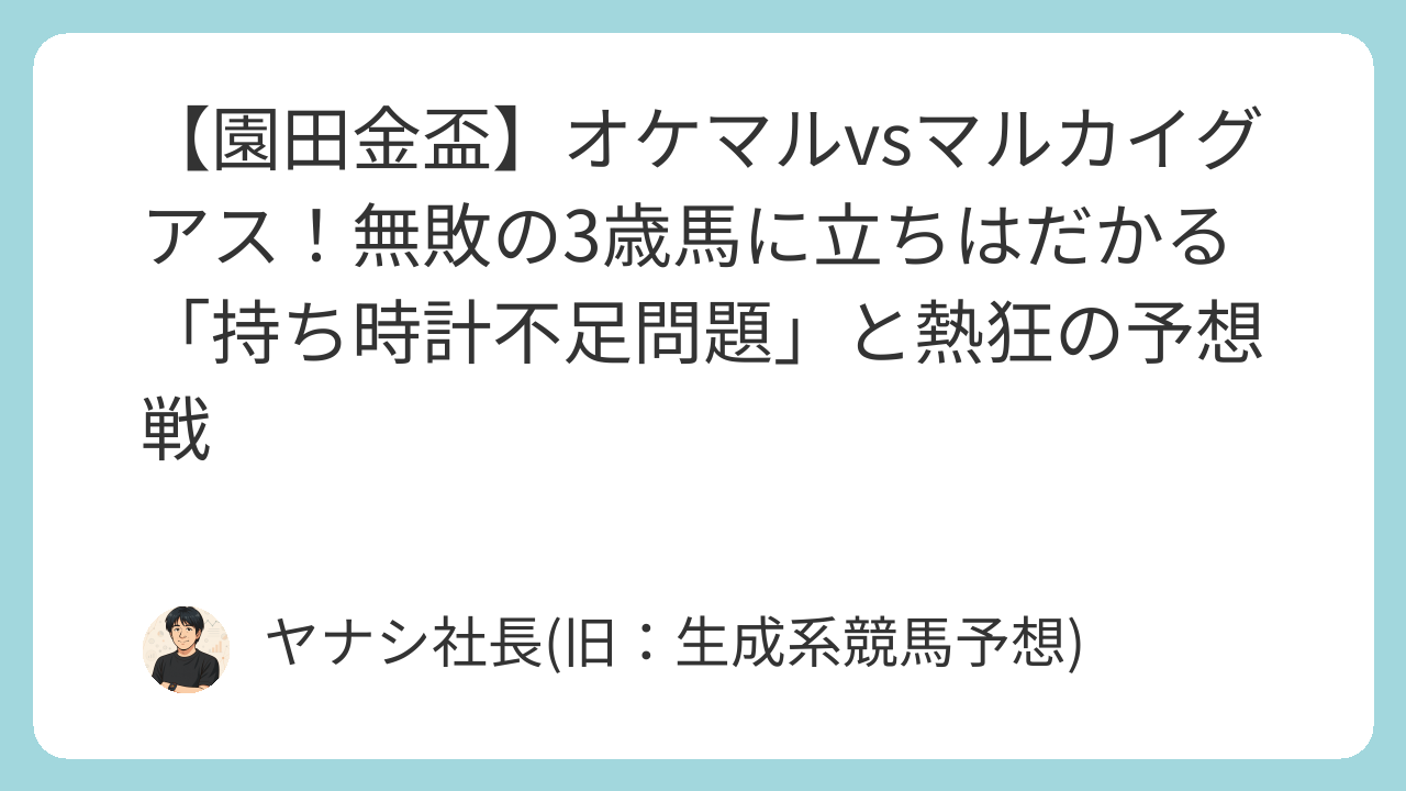 【園田金盃】オケマルvsマルカイグアス!無敗の3歳馬に立ちはだかる「持ち時計不足問題」と熱狂の予想戦