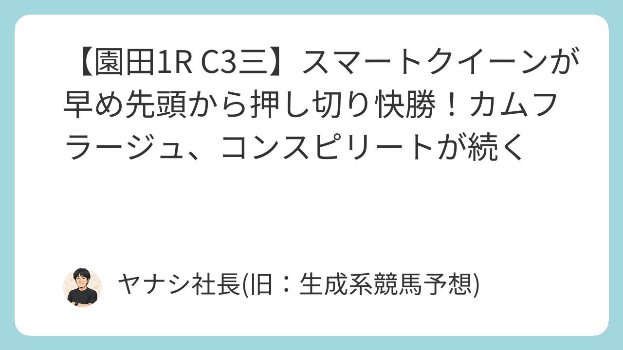 【園田1R C3三】スマートクイーンが早め先頭から押し切り快勝!カムフラージュ、コンスピリートが続く