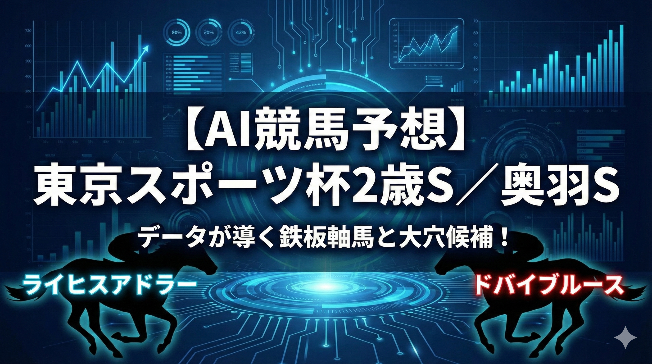 2025年11月24日、中央競馬は来年のクラシック戦線を占う東京スポーツ杯2歳S(GII)と、砂上の実力馬が揃う奥羽Sが開催されます。出世レースを制するのはライヒスアドラーか、それとも伏兵か。ダート戦ではドバイブルースが中心か。出馬表、調教、血統データを多角的に分析し、各レースの有力馬と展開を徹底解説します。