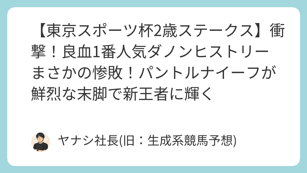 特にダノンヒストリーの惨敗は、今後の2歳戦線に大きな影響を与えることでしょう。一方で、パントルナイーフの勝利は、キズナ産駒の新たな可能性を示しました。この結果が、来年のクラシック戦線にどのような影響を与えるのか、今後の各馬の動向に注目が集まります。
