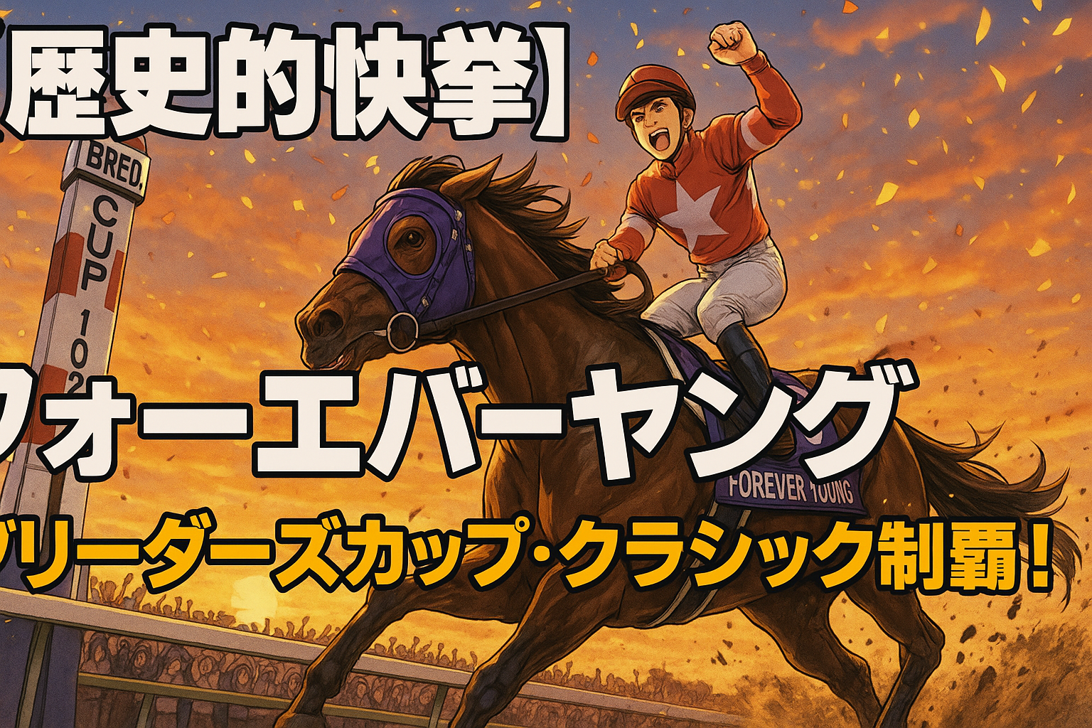 日本の4歳牡馬フォーエバーヤングが、2025年11月1日にデルマー競馬場で開催されたブリーダーズカップ・クラシックで歴史的勝利。日本調教馬として42年の歴史で初の快挙を達成し、前年の雪辱を果たしました。今後のさらなる活躍が期待されます。