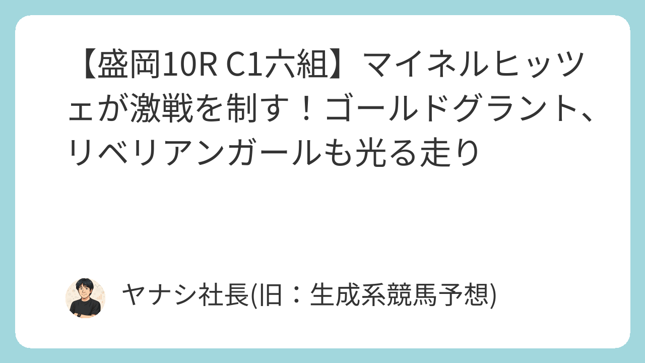 2025年11月18日、盛岡競馬場で行われたC1六組は、7歳牡馬マイネルヒッツェがベテランの意地を見せ、見事な勝利を飾りました。実況が熱を帯びる激戦の模様を、レース背景と共にお伝えします。
