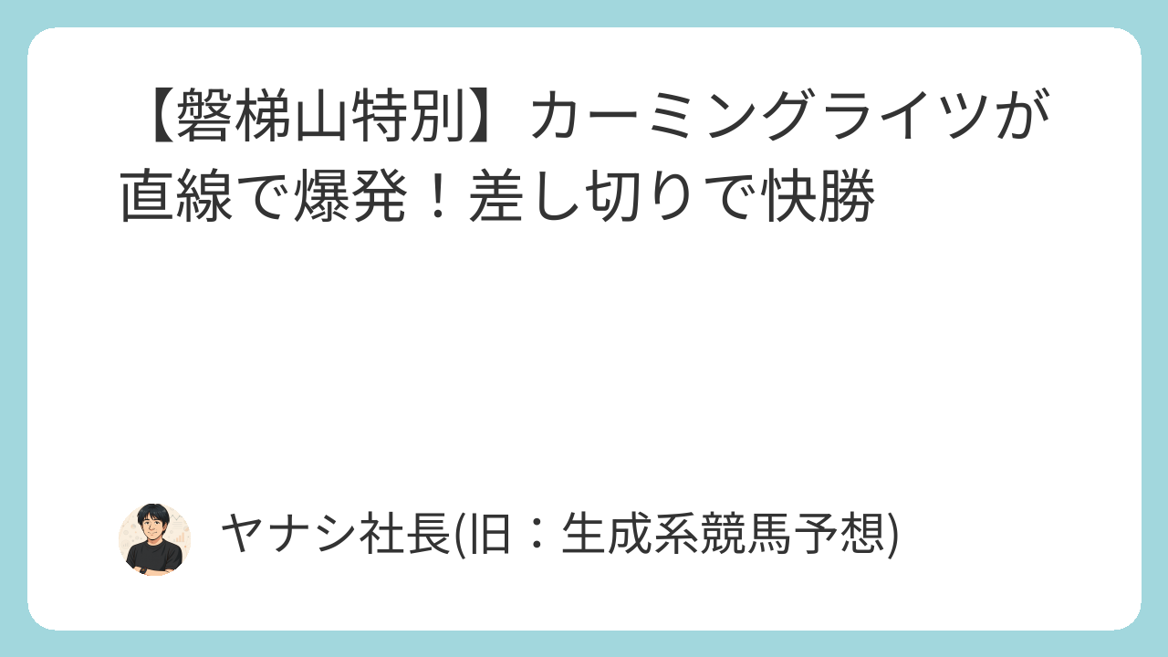 磐梯山特別は、カーミングライツという新たなスター候補の誕生を予感させる一戦となりました。今後の彼らの活躍に、ぜひご注目ください。