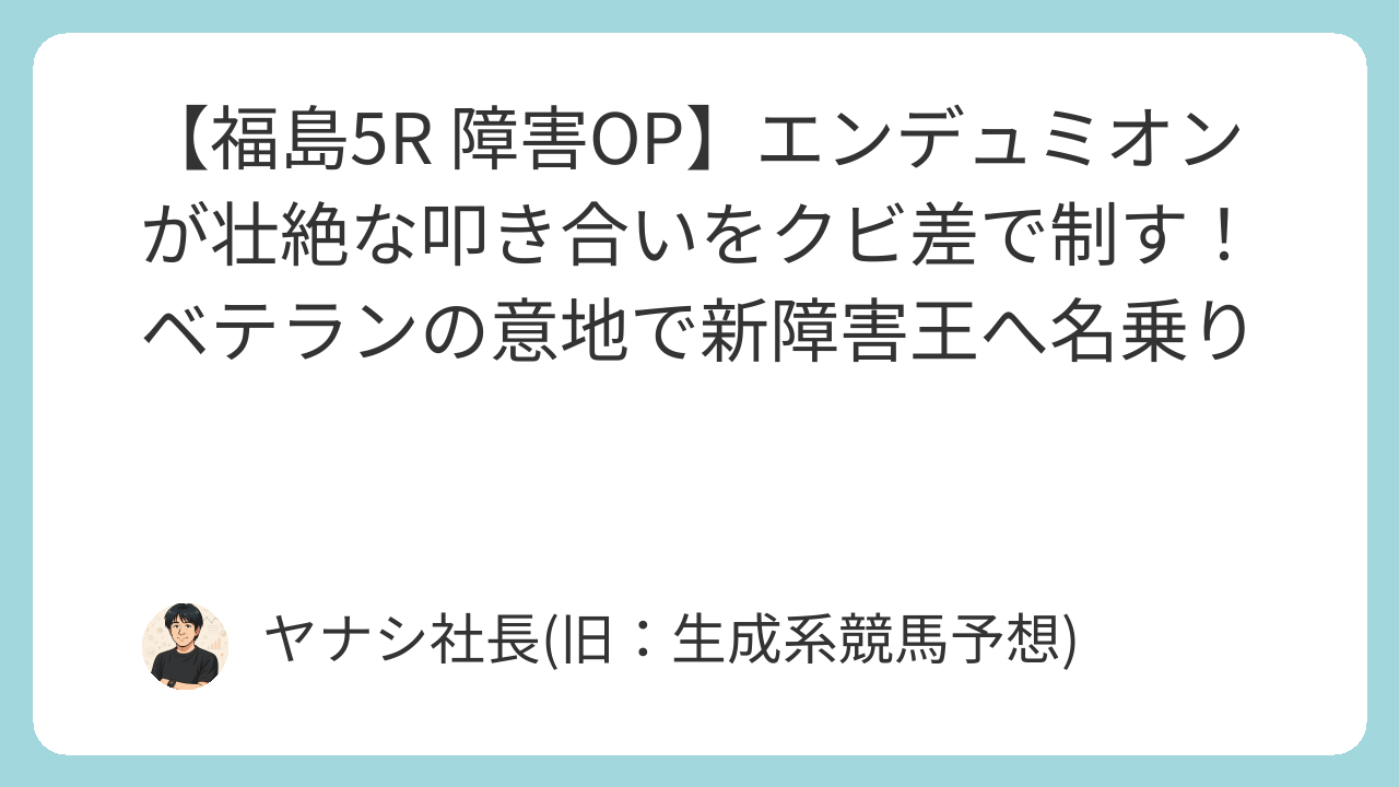 今回の福島5R障害オープンは、ベテラン勢の意地と若手の台頭が交錯する見どころの多い一戦となりました。特にエンデュミオンの勝利は、今後の障害レース戦線に新たな風を吹き込むことでしょう。次走以降も彼らの活躍から目が離せません。