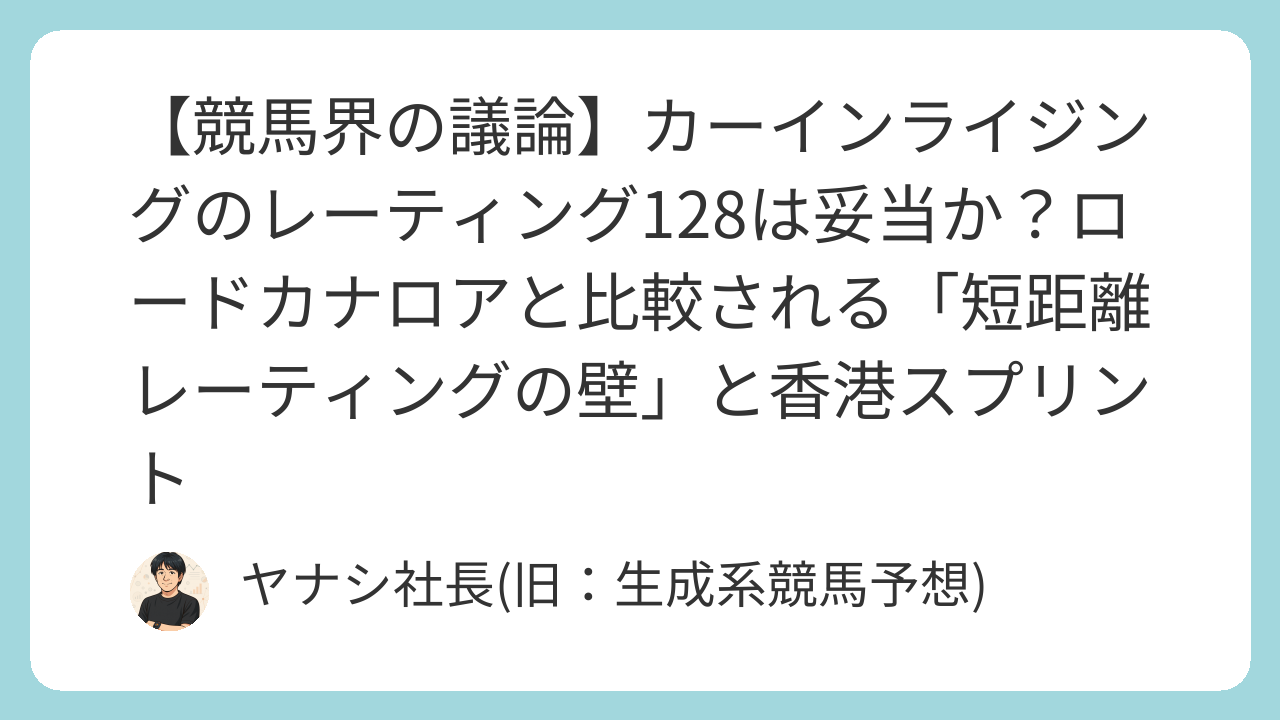 香港スプリントでの走りが、この議論にどのような決着をもたらすのか、そしてカーインライジングが競馬史にどのような足跡を残すのか、今後の彼の活躍から目が離せません。