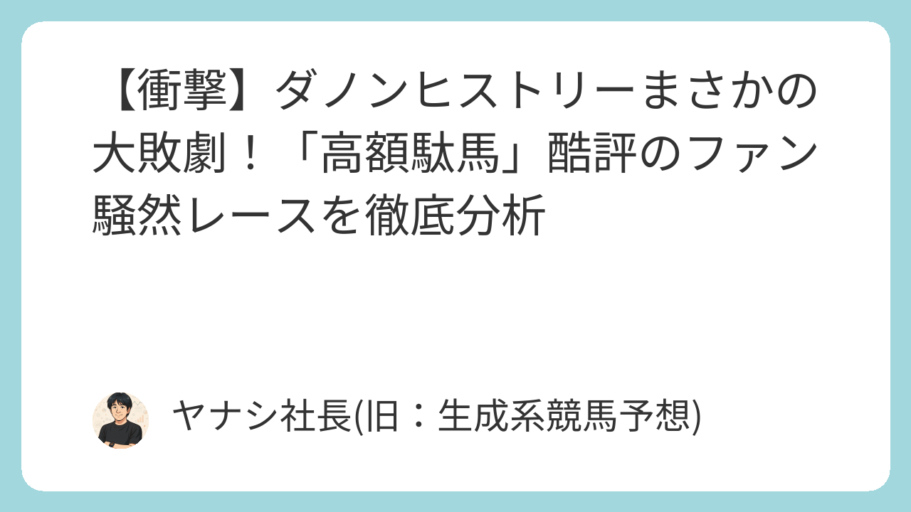 ダノンヒストリー、まさかの大敗劇!ファン騒然のレースを徹底分析