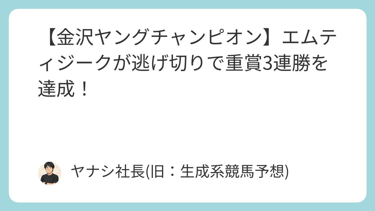 結果、3番エムティジークが単勝式の一番人気に応え、堂々の逃げ切り勝ちを収めました。これで4連勝、そして重賞3連勝という快挙を達成。その強さを見せつけるレースとなりました。