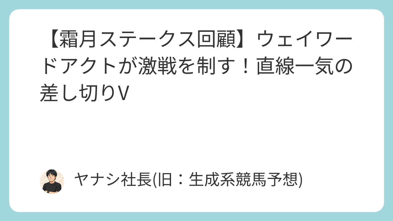 今回のレースでは、4番ウェイワードアクトが見事な差し切り勝ちを収めました。中団から直線で外に持ち出す判断と、そこからの加速力が光りました。今後も同様の展開になった際には注目したい一頭です。