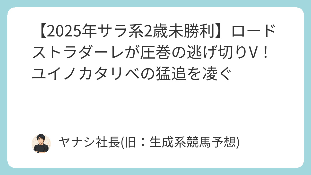 2025年11月23日に行われたレースは、若駒たちの熱い戦いが繰り広げられました。特に注目すべきは、スタートからゴールまで主導権を握り続けたロードストラダーレの圧巻の走りでしょう。