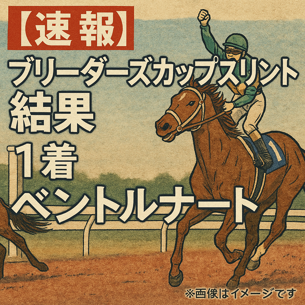 2025年11月2日、デルマー競馬場で行われた第42回ブリーダーズカップスプリント(G1・ダート1200m)は、イラッド・オルティス・ジュニア騎手騎乗のベントルナートが逃げ切り勝ちを収めました。前年2着の雪辱を見事に果たし、G1初制覇。日本から参戦した矢作芳人厩舎のアメリカンステージ(坂井瑠星騎手)も先行策から粘り、4着と大健闘を見せました。