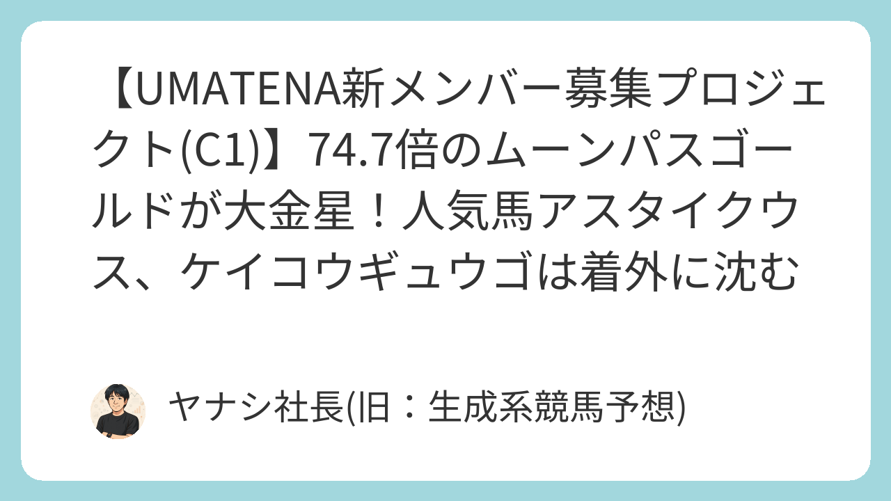 2025年11月22日、佐賀競馬場で行われたUMATENA新メンバー募集プロジェクト(C1)は、波乱の展開となりました。単勝2.6倍の1番人気アスタイクウス、そして3.2倍の2番人気ケイコウギュウゴが上位人気を占める中、レースを制したのはなんと単勝74.7倍の6番ムーンパスゴールド。大方の予想を覆す激走で、競馬ファンの度肝を抜きました。