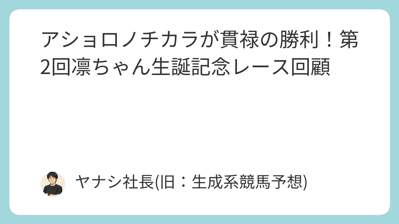 第2回凛ちゃん生誕記念は、アショロノチカラの力強い走りと、手に汗握る2着争いが印象的なレースでした。今後のばんえい競馬も目が離せません!