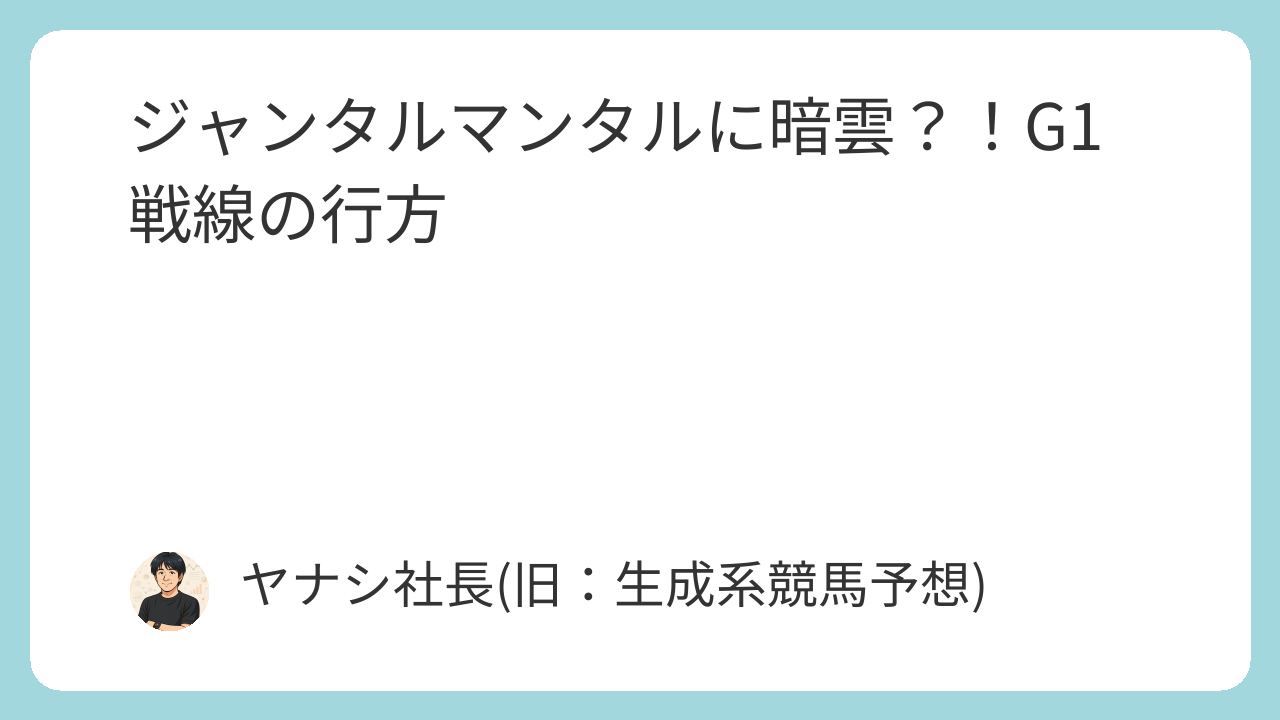 果たしてジャンタルマンタルは、この「暗雲」を吹き飛ばし、G1の舞台で輝きを放つことができるのでしょうか。レース当日のパドックでの馬体や、最終的なオッズの動向にも注目が集まります。