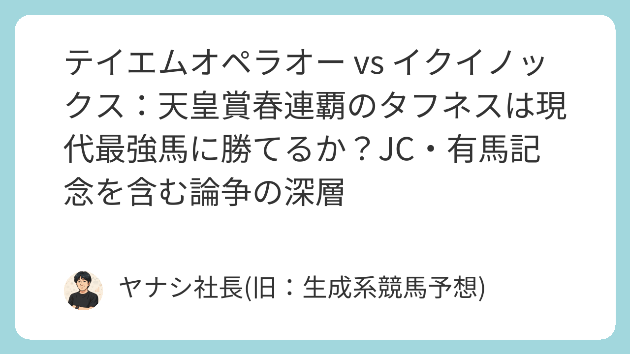 競馬ファンを熱狂させる「最強馬」の称号。時代を超えて語り継がれる名馬たちの比較は、常に尽きることのない議論の種となります。今回、とある匿名掲示板では、2000年代の絶対王者「テイエムオペラオー」と、現代競馬の頂点に君臨した「イクイノックス」を巡る、白熱した議論が繰り広げられました。