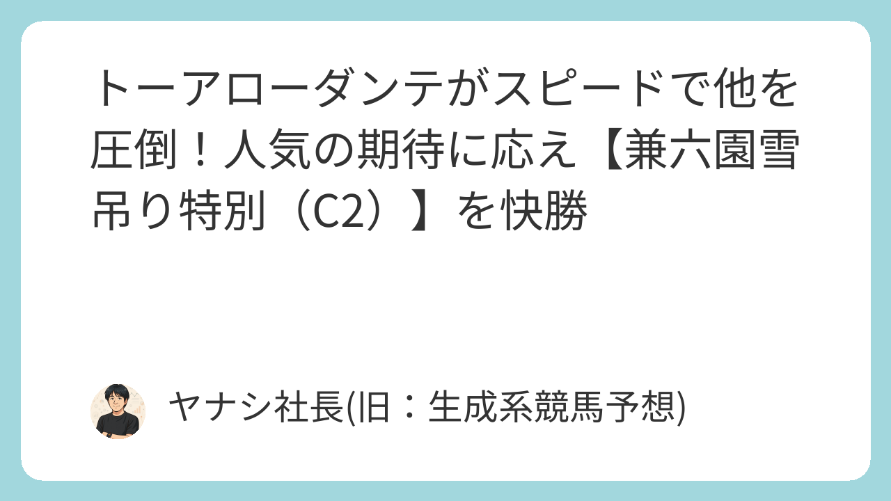 金沢競馬場の熱戦、兼六園雪吊り特別(C2)は、5番トーアローダンテが人気の期待に応え、見事な勝利を飾りました。