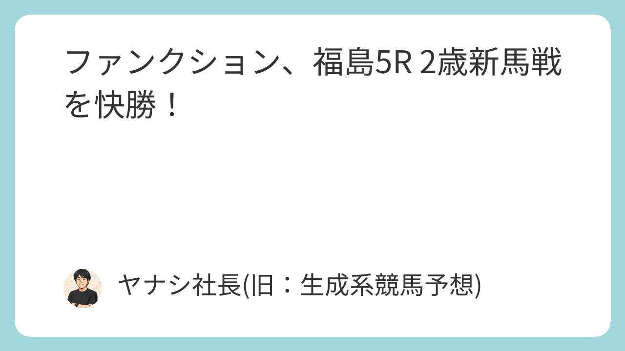 福島5R 2歳新馬戦:ファンクションが鮮やかな勝利!