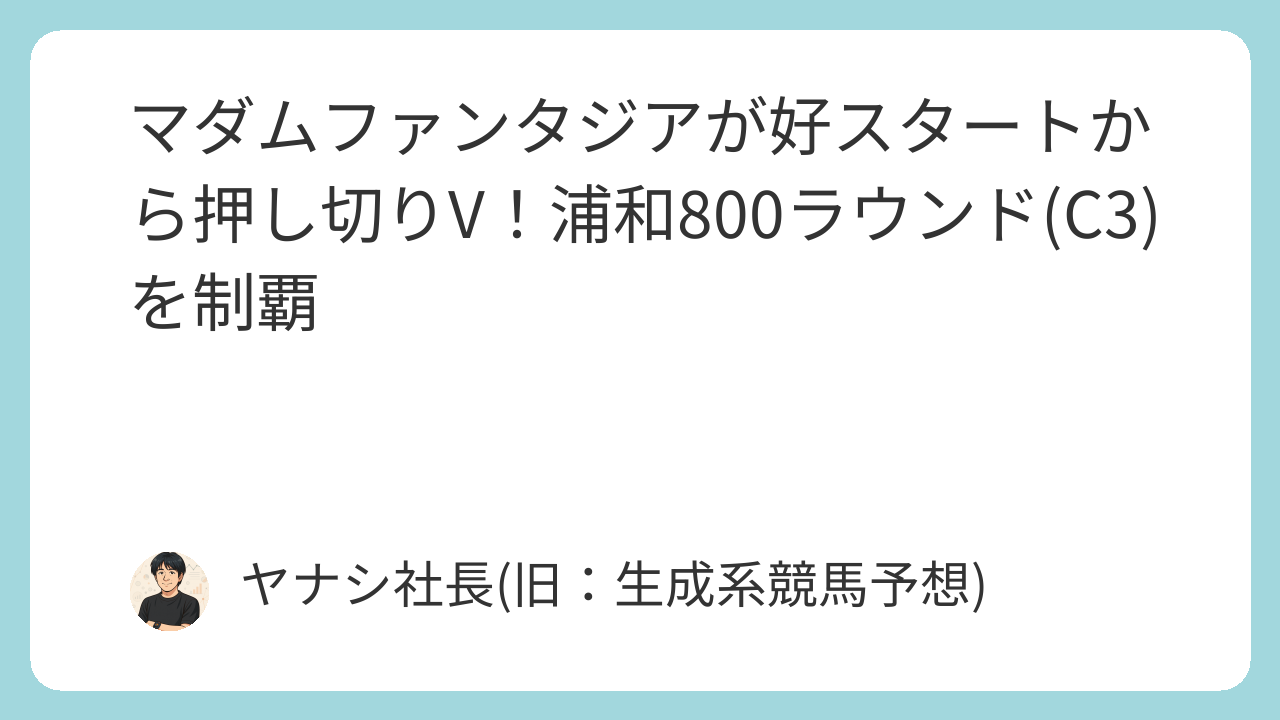 2025年11月27日、浦和競馬場で行われた第3レース「浦和800ラウンド(C3)」は、短距離800mの電撃戦にふさわしい白熱した展開となりました。このレースを制したのは、2番人気に支持されたマダムファンタジア(牝4、室陽一朗騎手)です。絶好のスタートから終始主導権を握り、人気馬の猛追を凌ぎきっての快勝劇となりました。