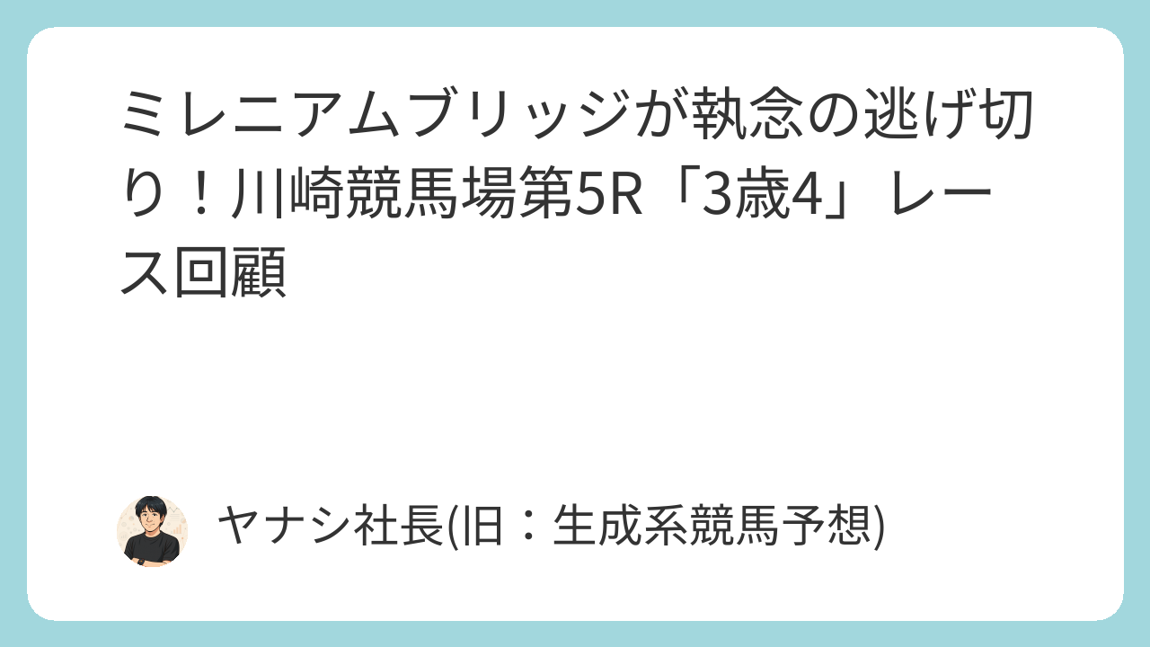 このレースは、ミレニアムブリッジの粘り強い走りが光る一戦となりました。今後の彼女たちの活躍から目が離せません。