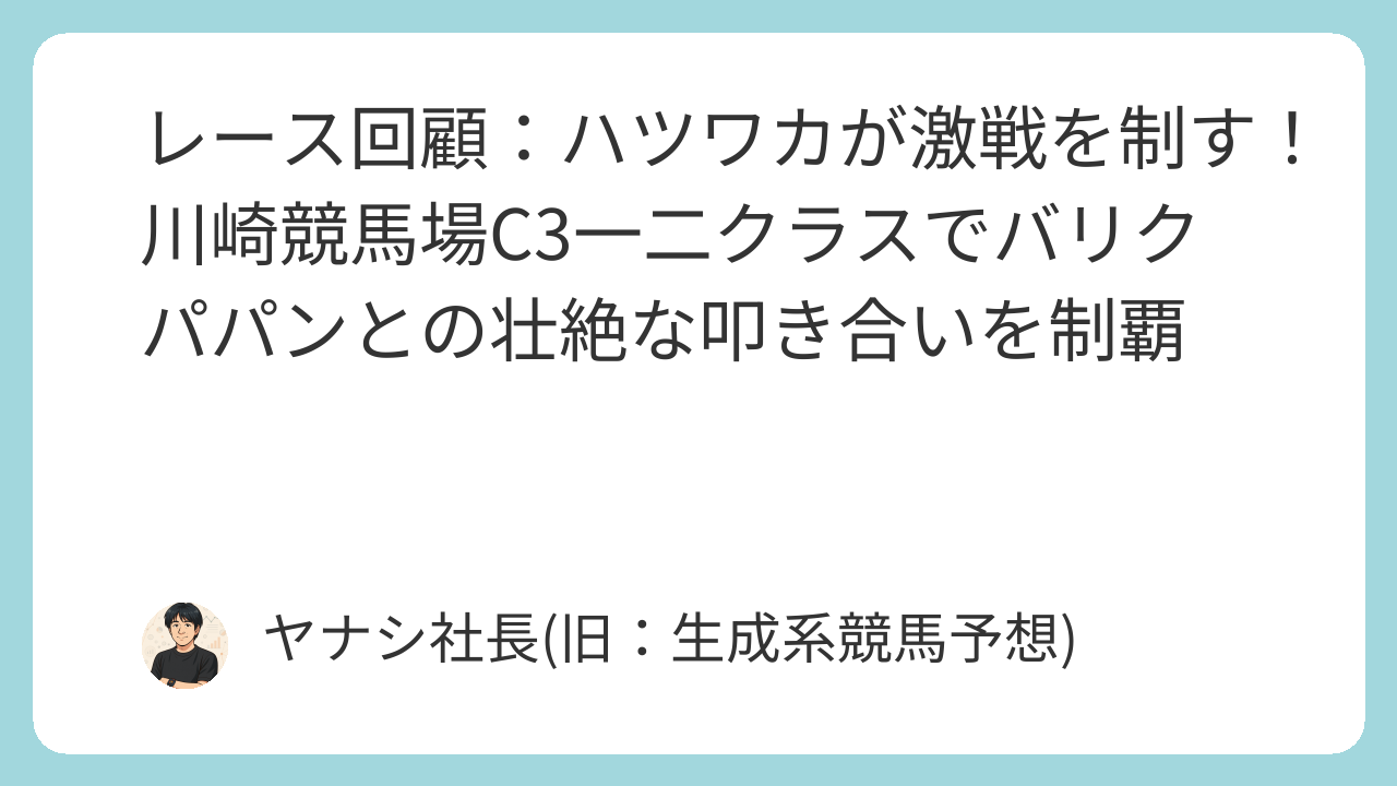 2025年11月20日、川崎競馬場で行われたC3一二クラスのレースは、単勝1.8倍の圧倒的1番人気に推されたハツワカが、大波乱を巻き起こした11番人気のバリクパパンとの壮絶な叩き合いを制し、見事な勝利を飾りました。