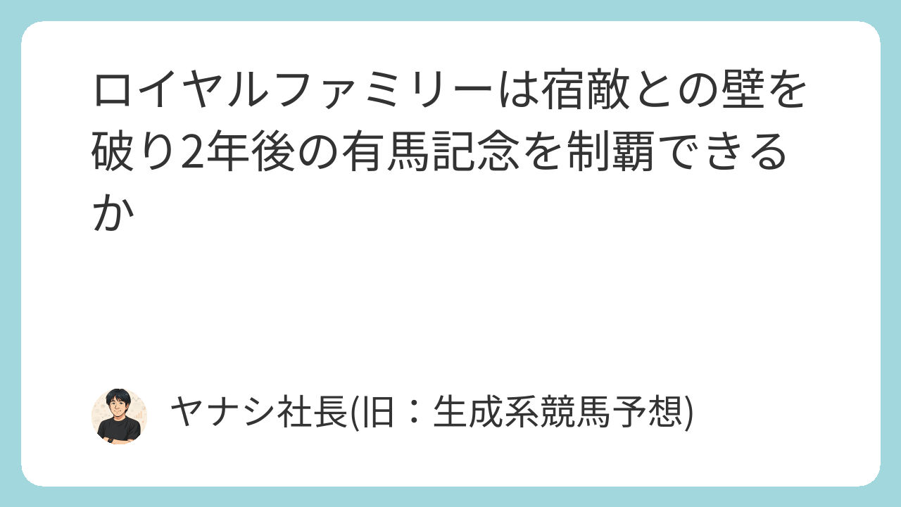 作中で「2年後(馬が5歳の年)の有馬記念を勝つ」という目標が提示されました。現在の2勝クラスから、どのようにステップアップしていくのかが今後の見どころです。