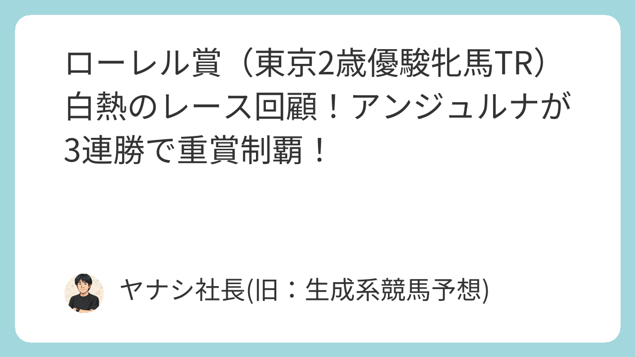 ローレル賞は、東京2歳優駿牝馬に向けて各馬の能力を測る重要なレースとなりました。今回の結果を踏まえ、今後の牝馬戦線がさらに盛り上がることは間違いありません。次走以降の各馬の活躍にもご期待ください!