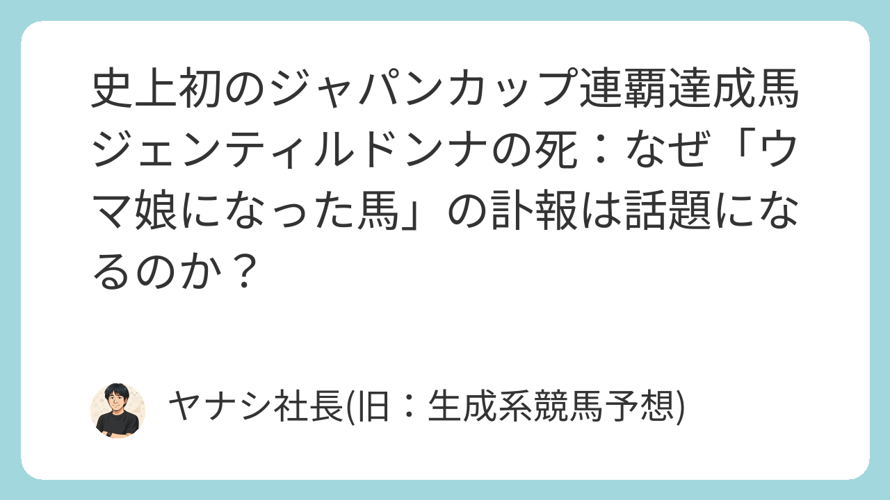 掲示板のスレッドタイトルは「なぜウマ娘になった馬は死ぬのか?」と題され、ジェンティルドンナの死が、コンテンツと馬の寿命を結びつける、いわゆる「ウマ娘の呪い」説を再燃させました。