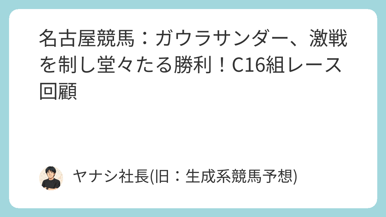 このレースは、人気馬たちが実力通りの走りを見せ、競馬ファンを大いに沸かせました。特にガウラサンダーの勝利は、今後のC1クラスのレースを占う上で重要な一戦となることでしょう。