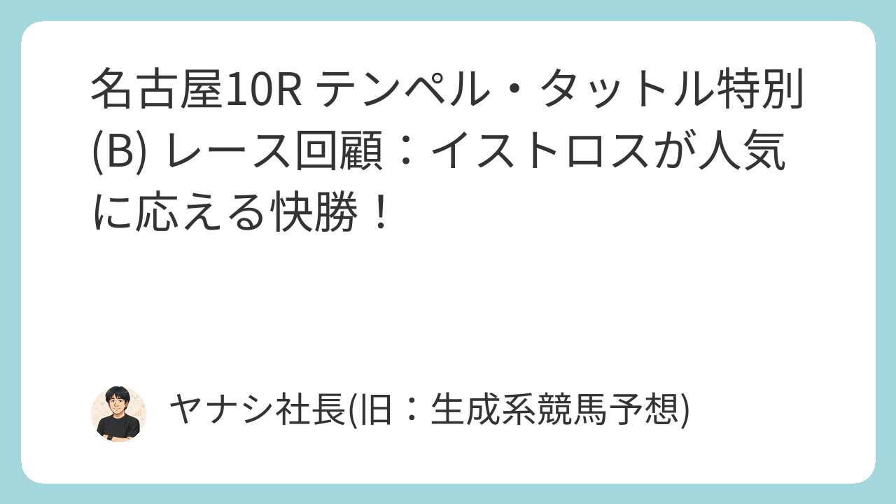 今回のテンペル・タットル特別(B)は、イストロスの強さが光る一戦となりました。今後の競馬シーンを彩るであろう彼らの活躍に期待しましょう。