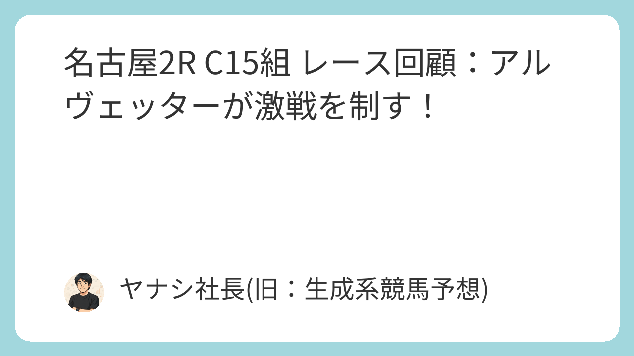 今回の名古屋2R C15組は、見どころの多い熱戦となりました。各馬の今後の活躍に期待しましょう。