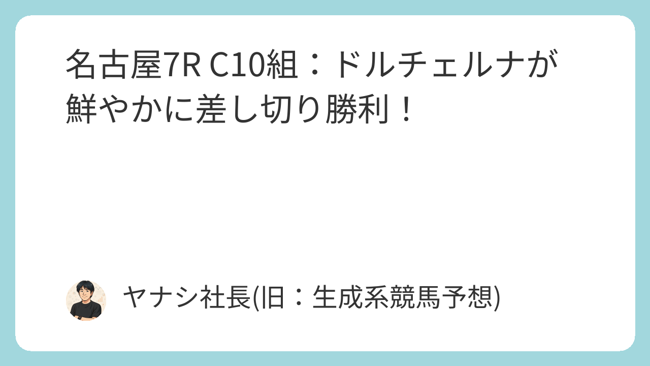 今回の名古屋7R C10組は、若駒の台頭とベテラン勢の意地がぶつかり合う見応えのある一戦となりました。今後の各馬の活躍にも期待が高まります。