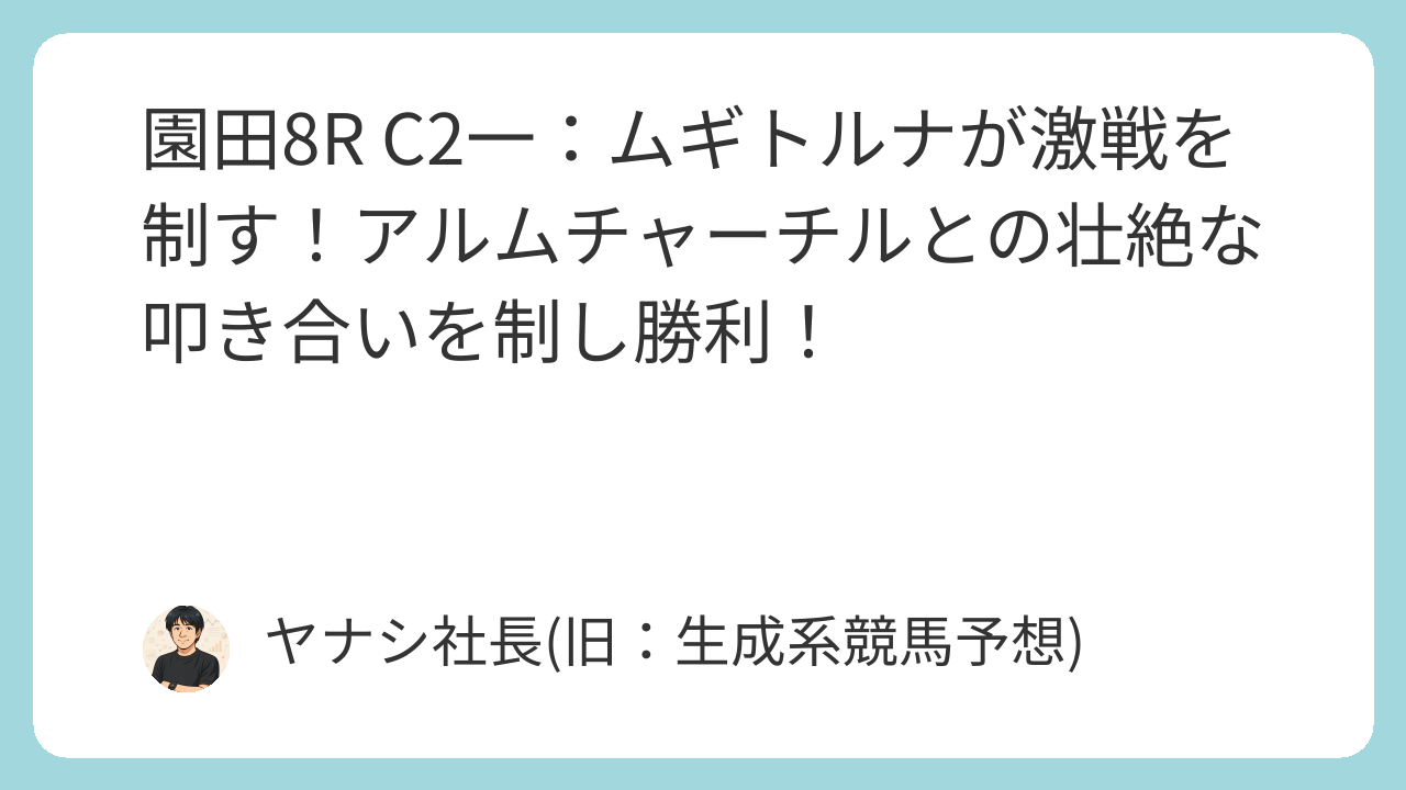 園田8R C2一は、ムギトルナが山本咲希騎手とのコンビで激戦を制し、その実力を証明しました。惜敗したアルムチャーチルや、ベテランの意地を見せたスマートキングダムなど、今後も注目すべき馬が多く、次走以降のレースがますます楽しみになります。