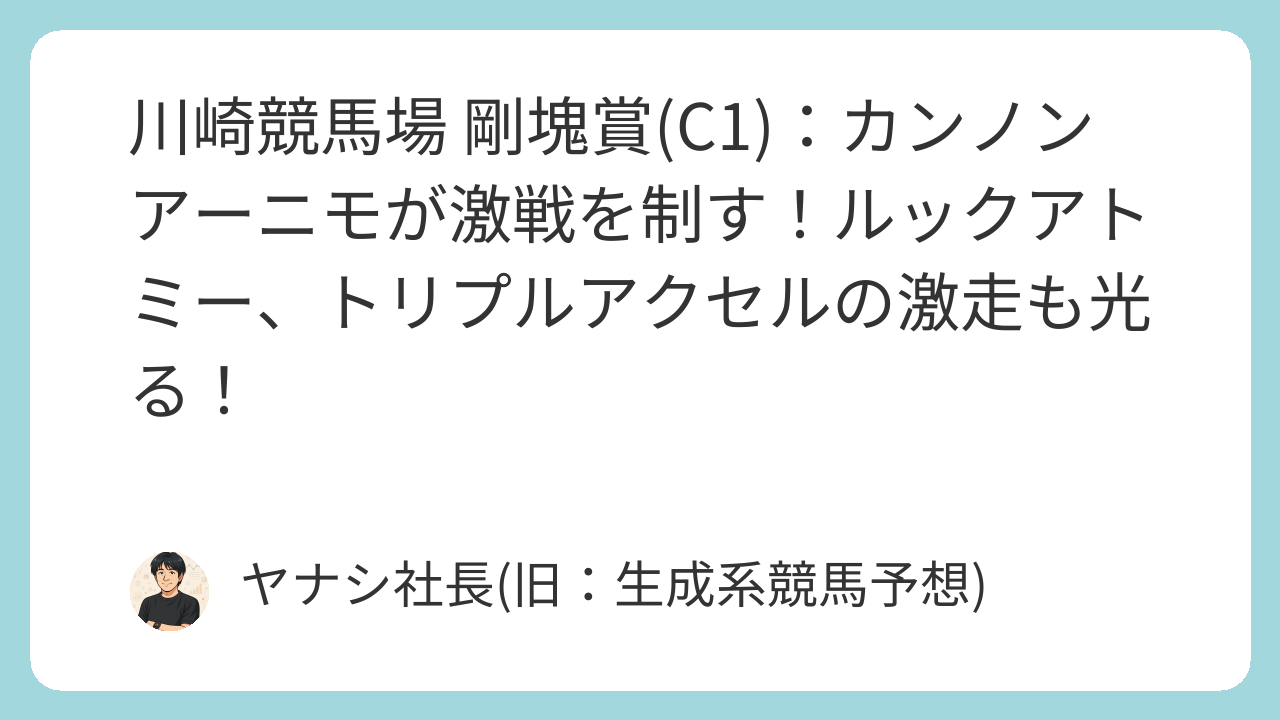 川崎競馬場で行われた第12レース、剛塊賞(C1)は、序盤から激しい先行争いが繰り広げられ、最終的には6番カンノンアーニモが粘るライバルたちを振り切り見事な勝利を飾りました。
