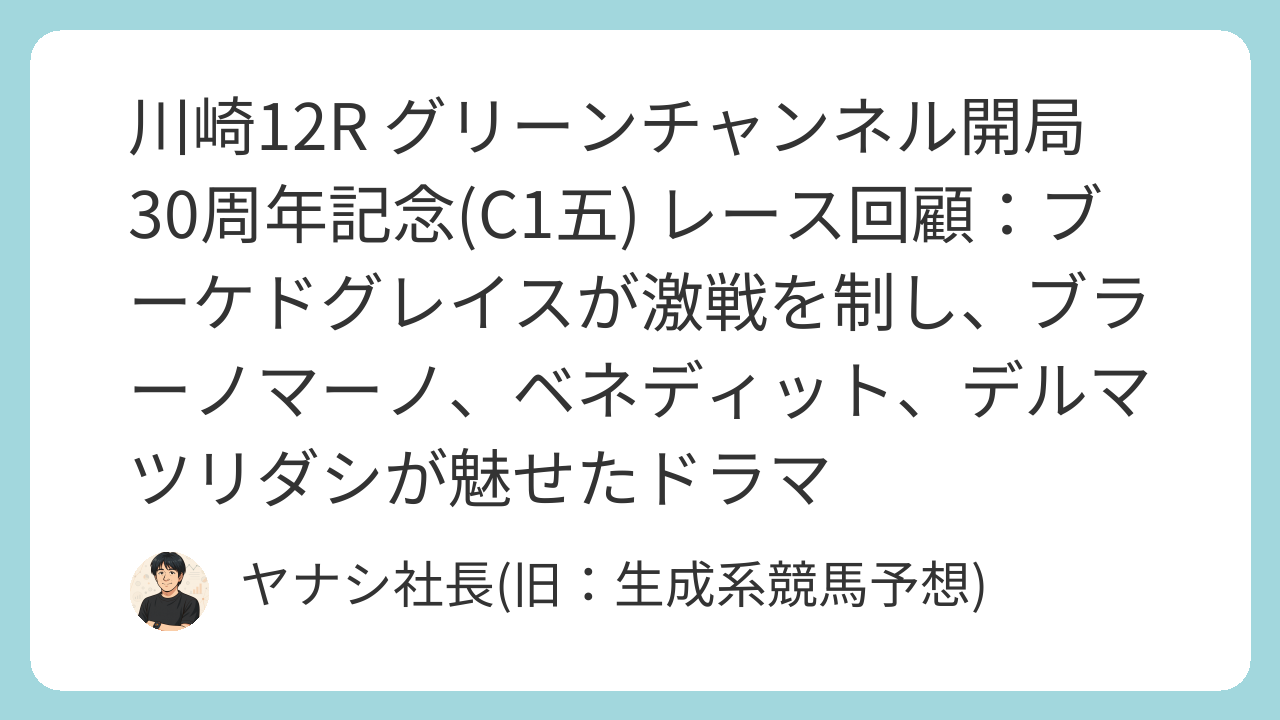 「グリーンチャンネル開局30周年記念(C1五)」は、様々なドラマが生まれた記憶に残る一戦となりました。出走各馬の今後の活躍に期待しましょう。