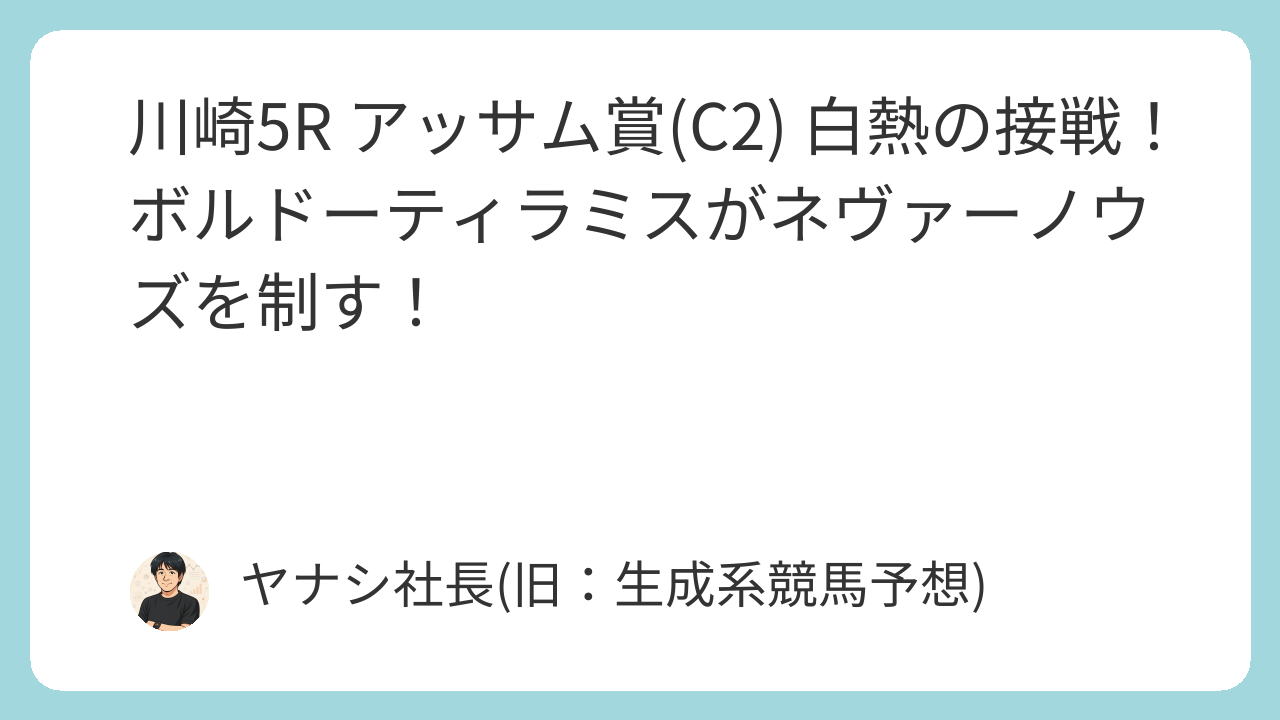 2025年11月18日、川崎競馬場で行われたアッサム賞(C2)は、ゴール前で繰り広げられた壮絶な叩き合いに場内が沸きました。3歳牝馬のボルドーティラミスと、同じく3歳牡馬のネヴァーノウズが、最後まで互いに譲らぬ走りで観客を魅了しました。