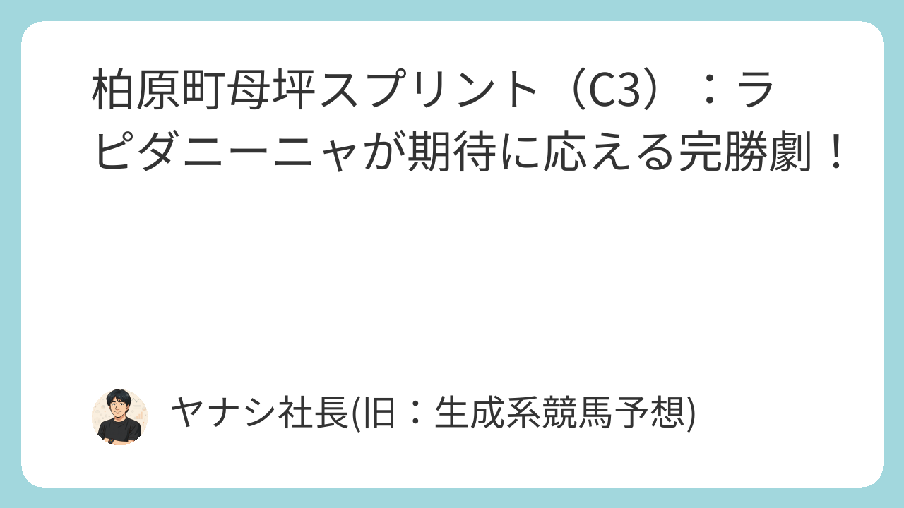 今回の柏原町母坪スプリントは、ラピダニーニャの強さが際立つ一戦となりました。しかし、その裏では多くのドラマが生まれ、今後のレースに繋がるヒントが隠されていました。次回のレースも目が離せません!