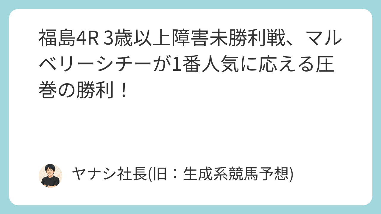 2025年3月3日、福島競馬場で行われた3歳以上障害未勝利戦は、単勝1.9倍の圧倒的1番人気に推されたマルベリーシチーが、その期待に応える見事な勝利を飾りました。レースは序盤からマルベリーシチーが主導権を握り、危なげない走りで後続を突き放す展開。障害戦ならではのドラマと興奮が詰まった一戦を、詳細な実況とともにお届けします。