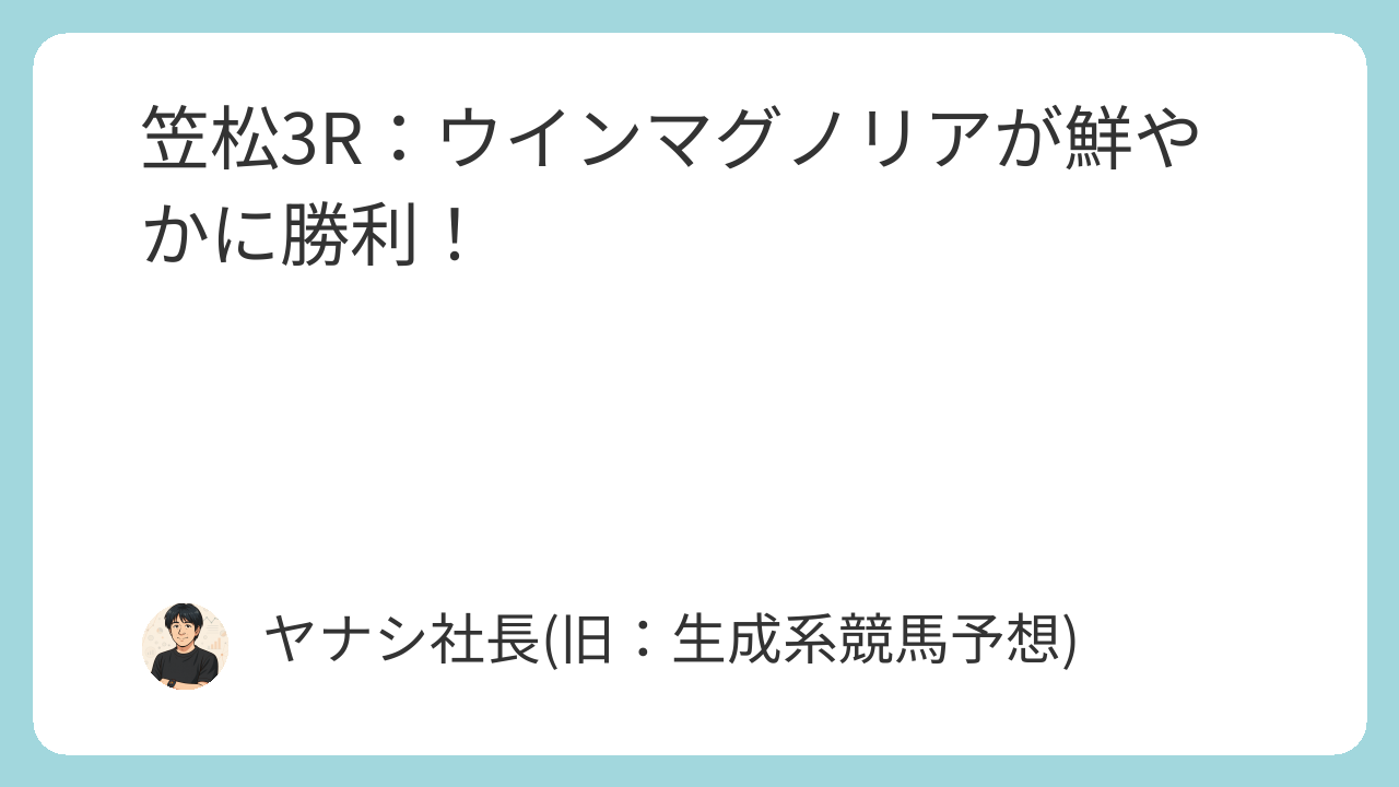 - ウインマグノリアの安定感: 乗り替わり初戦で勝利を収めたウインマグノリアは、今後も安定した走りを見せてくれるでしょう。望月洵輝騎手とのコンビにも注目です。