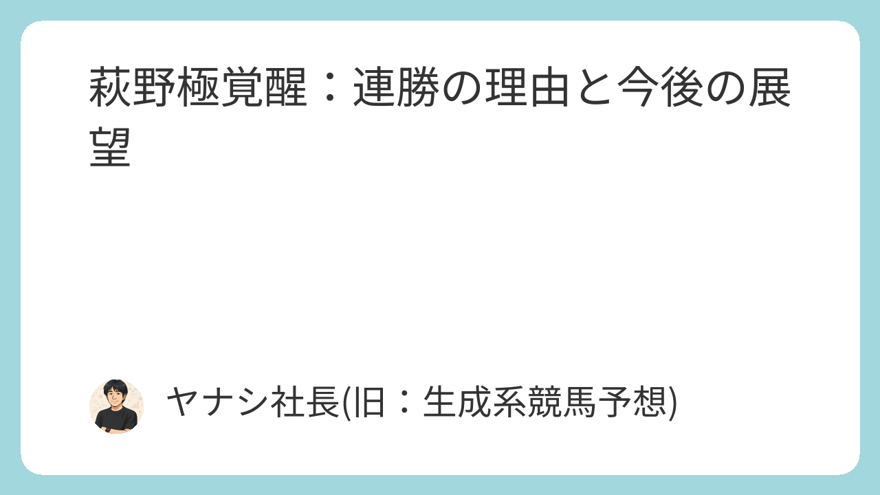 「あとはローカルから抜け出せるかってところまではきたよね」「もともと東京育ちだし美浦に移籍したら関東リーディングは狙える」といった期待の声も上がっており、この勢いを維持できれば、さらなる飛躍も夢ではないでしょう。この「萩野極覚醒」が一時的なものなのか、それとも本格的なブレイクの始まりなのか、今後の彼の活躍から目が離せません。